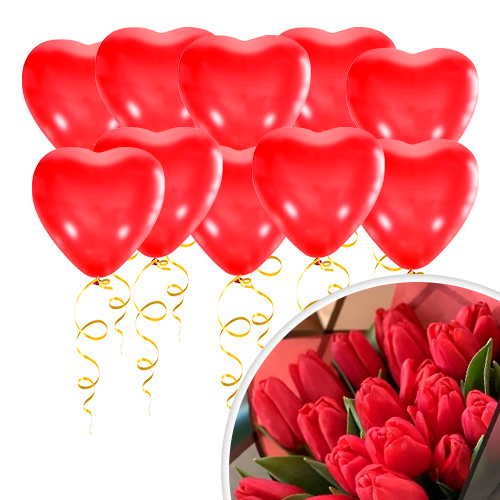 Состав оформления:- Большое фольгированное сердце с надписью - 1 шт.- Фольгированные сердца - 35 шт...