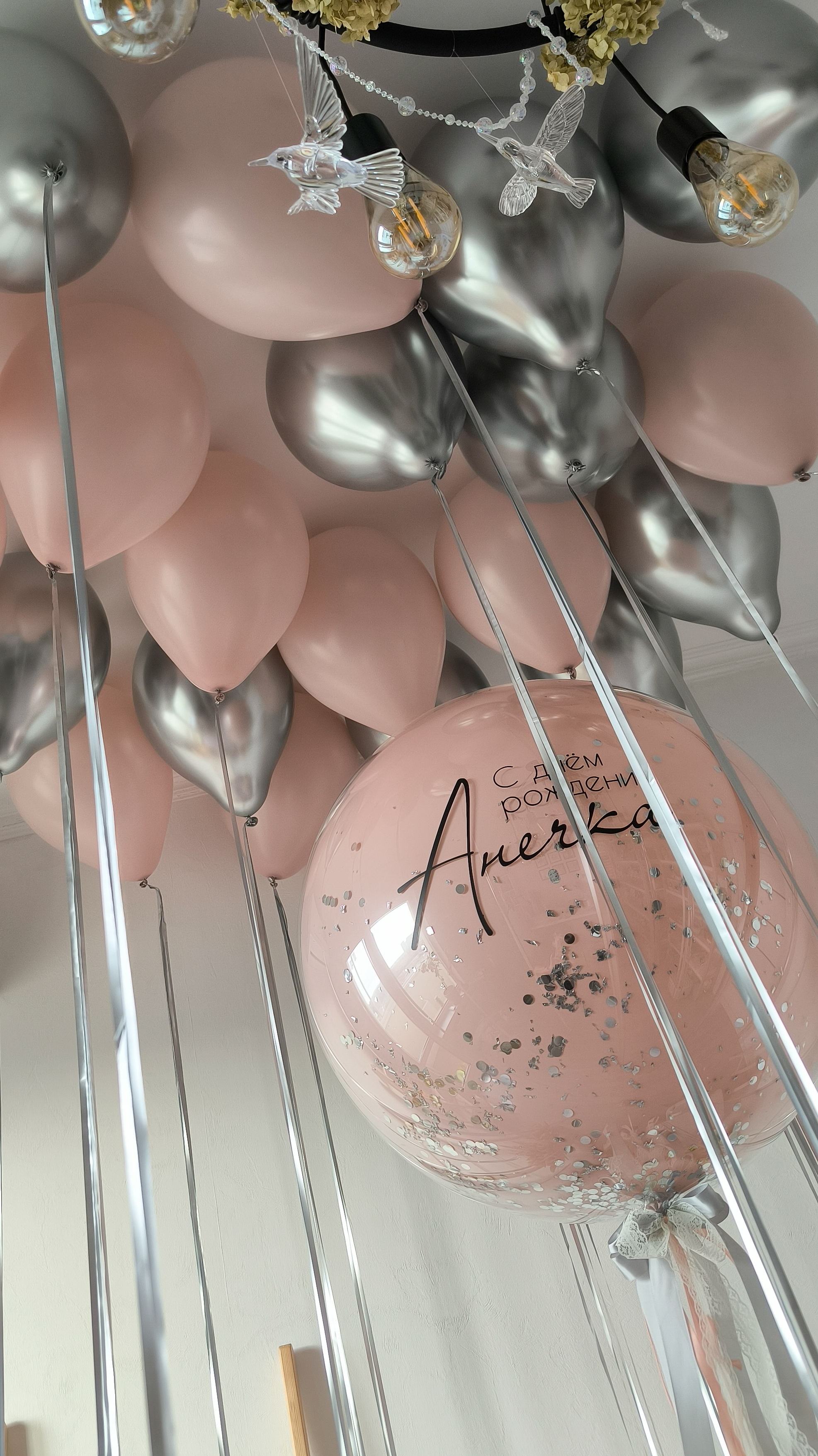 - Большой стеклянный шар с конфетти и с надписью - 1 шт.